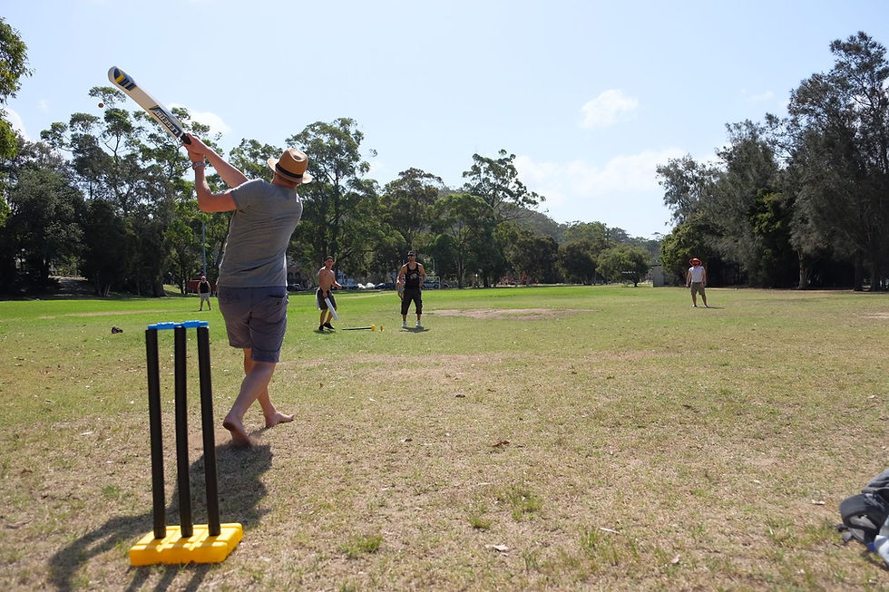 As someone within the extended family has received a backyard cricket set for Christmas, it's the perfect time to put that plastic bat to good use. Many backpackers or travelers may question how you may play the "five day" game of cricket in between the meat and salads, but really its quite simple. Find some stumps, we recommend either a wheelie bin or an Eski with a cardboard box on top. At this point you should be at a park, dead end street, backyard or at the beach, anywhere with enough room that doesn't result in instant 6 and outs.